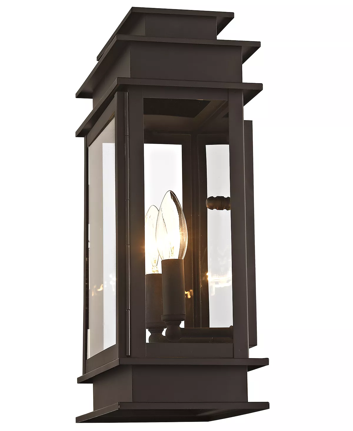 Modern materials breathe new life into classic English styling with the Princeton 2-Light sconce by Livex. This hand-crafted brass pocket lantern has a bronze-tone finish that evokes old-world charm.