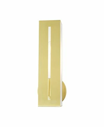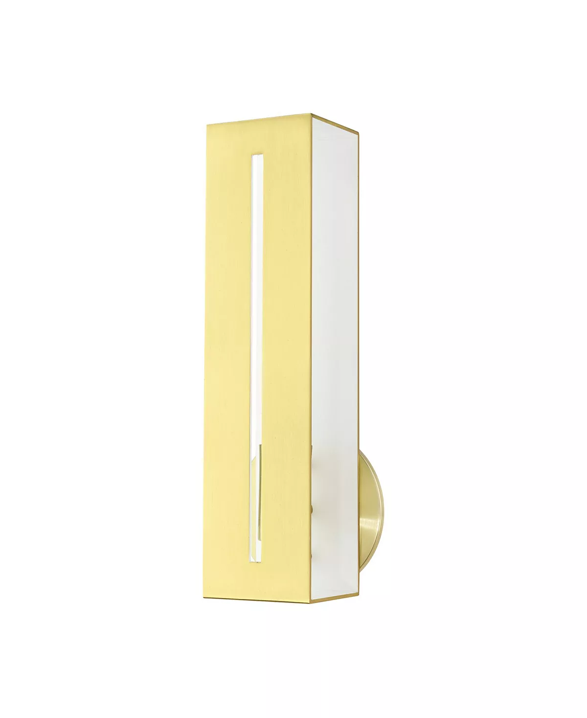 - Equipped with hand welded satin brass shade with shiny white finish inside