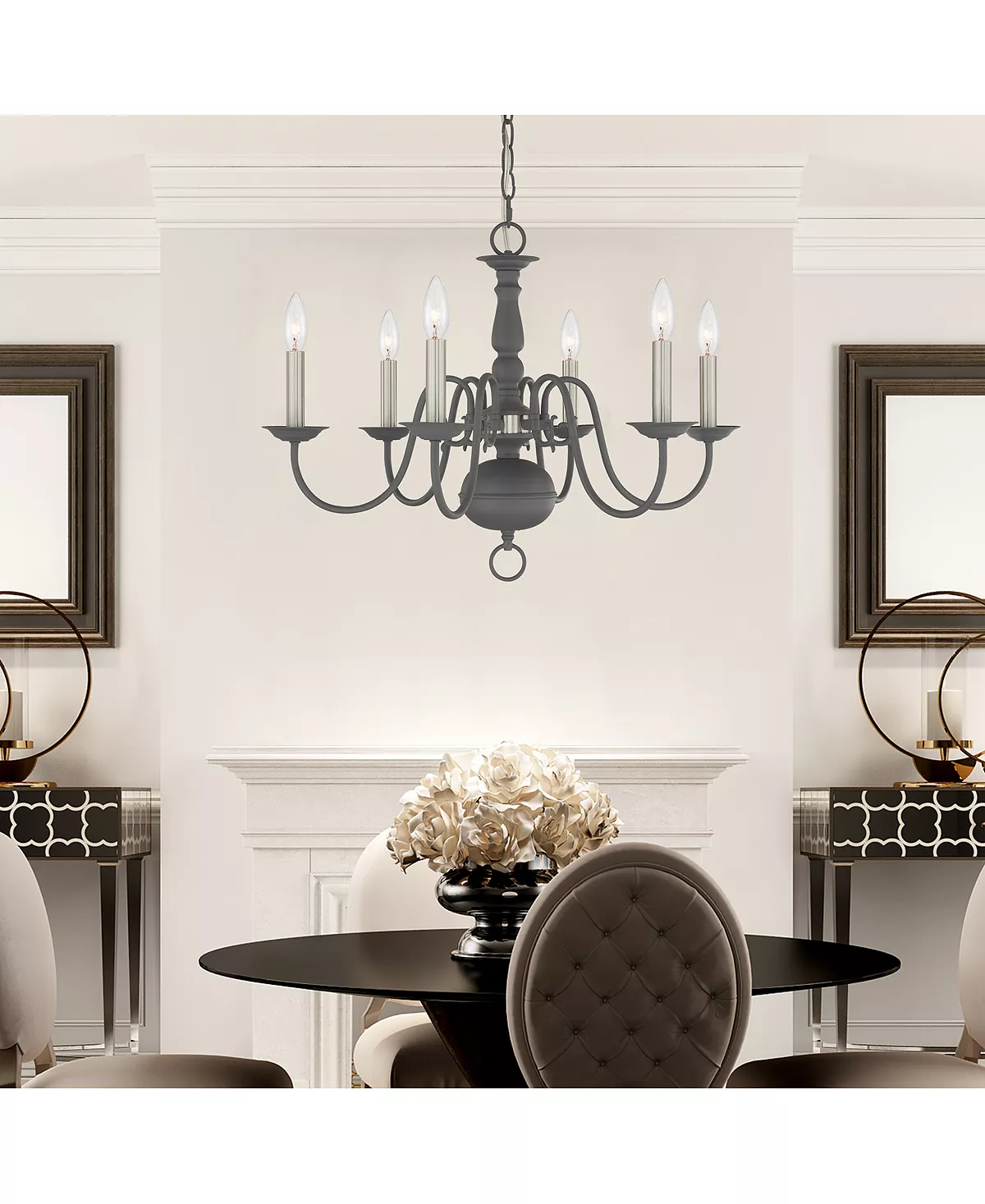 Illuminate your space in an elegant way with the swooping curved design of this classically-inspired Williamsburg six-light chandelier from Livex.