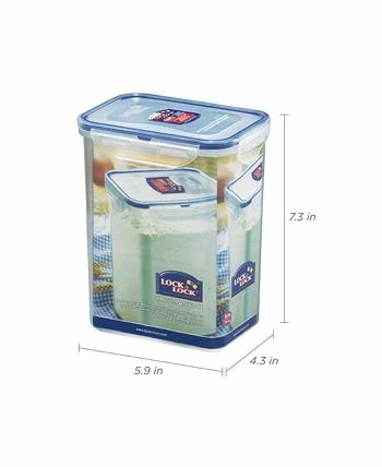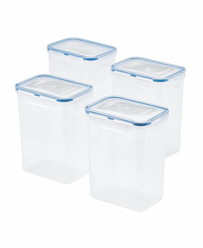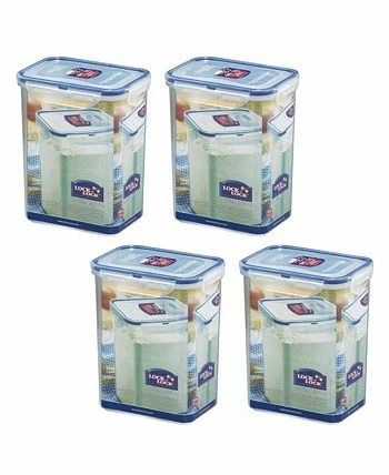 Featuring four 7.6-cup storage containers, this set is ideal for storing similar pantry items and foods like cookies, crackers, and granola bars, and each container features a durable, lightweight design that makes it easier to handle. Lock & Lock’s 4-hinge locking system has been durability tested to last up to 3 million uses, and the enhanced silicone seal is 100% airtight to keep foods fresh longer and 100% leak-proof to prevent messy drips and sloppy spills. BPA-free construction provides a healthy and versatile storage solution for the refrigerator, freezer, pantry, or anywhere your foods need to stay fresh, and Easy Essentials™ containers are microwave safe for convenient reheating and dishwasher safe for easy cleanup.