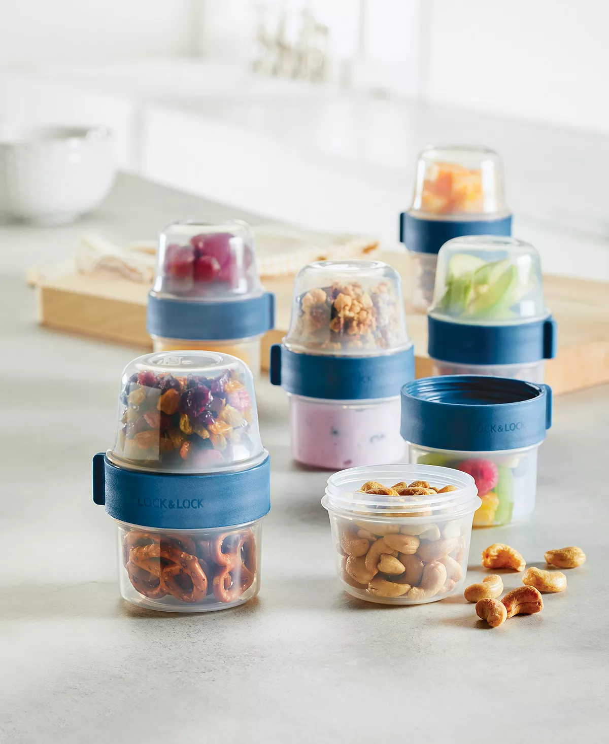 - Set includes: Six 5.07-ounce round top containers, six 5.07-ounce round bottom containers, and six shared containers lids