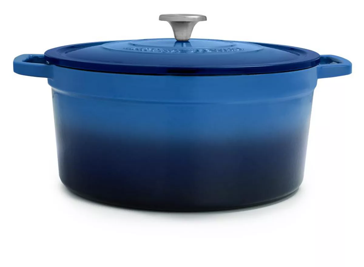 Ideal for baking or slow-cooking your favorite dishes, this family-sized 8-quart Round Dutch Oven from Martha Stewart Collection moves easily from oven to table while providing lasting beauty with your choice of colored exteriors. Heavy enamel-on-cast iron construction distributes heat evenly while locking in moisture.