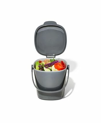 Our countertop-friendly Compost Bin was designed with the home cook in mind. The flip-up lid can be opened and closed with one hand. Smooth interior walls prevent food and liquids from building up and make cleanup simple. The sturdy handle makes it easy to carry the filled Bin outside.