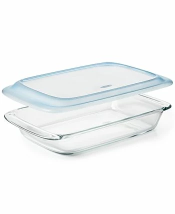 Perfect for taking dishes to potlucks or picnics. OXO Glass Bakeware is made of thermal shock resistant borosilicate glass, which means it can go from freezer to oven without the need to thaw. This Baking Dish has wide, comfortable handles which make it easy to transport from oven to countertop or table, and the slosh-proof lid makes it easy to prepare meals in advance, store leftovers, or take on the go.