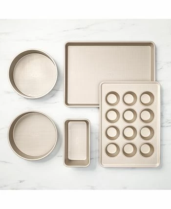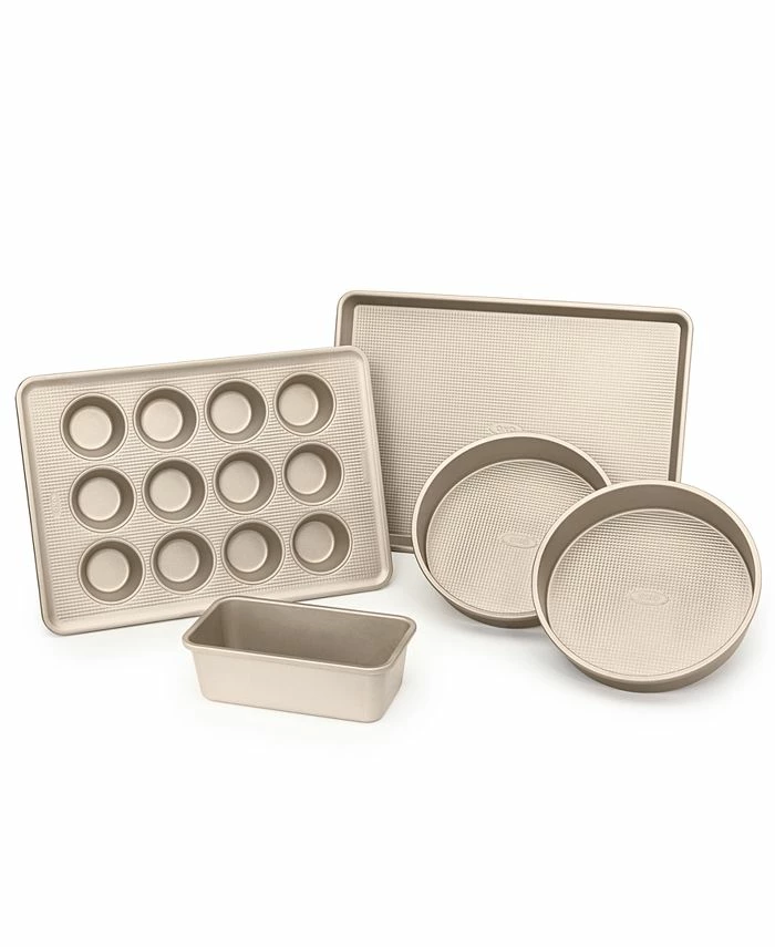 Create your own personal bakery with this set from OXO, five pans in commercial-grade steel with tough non-stick surfaces for quick heating and even baking. Reinforced edges bring enhanced stability to the five essentials.