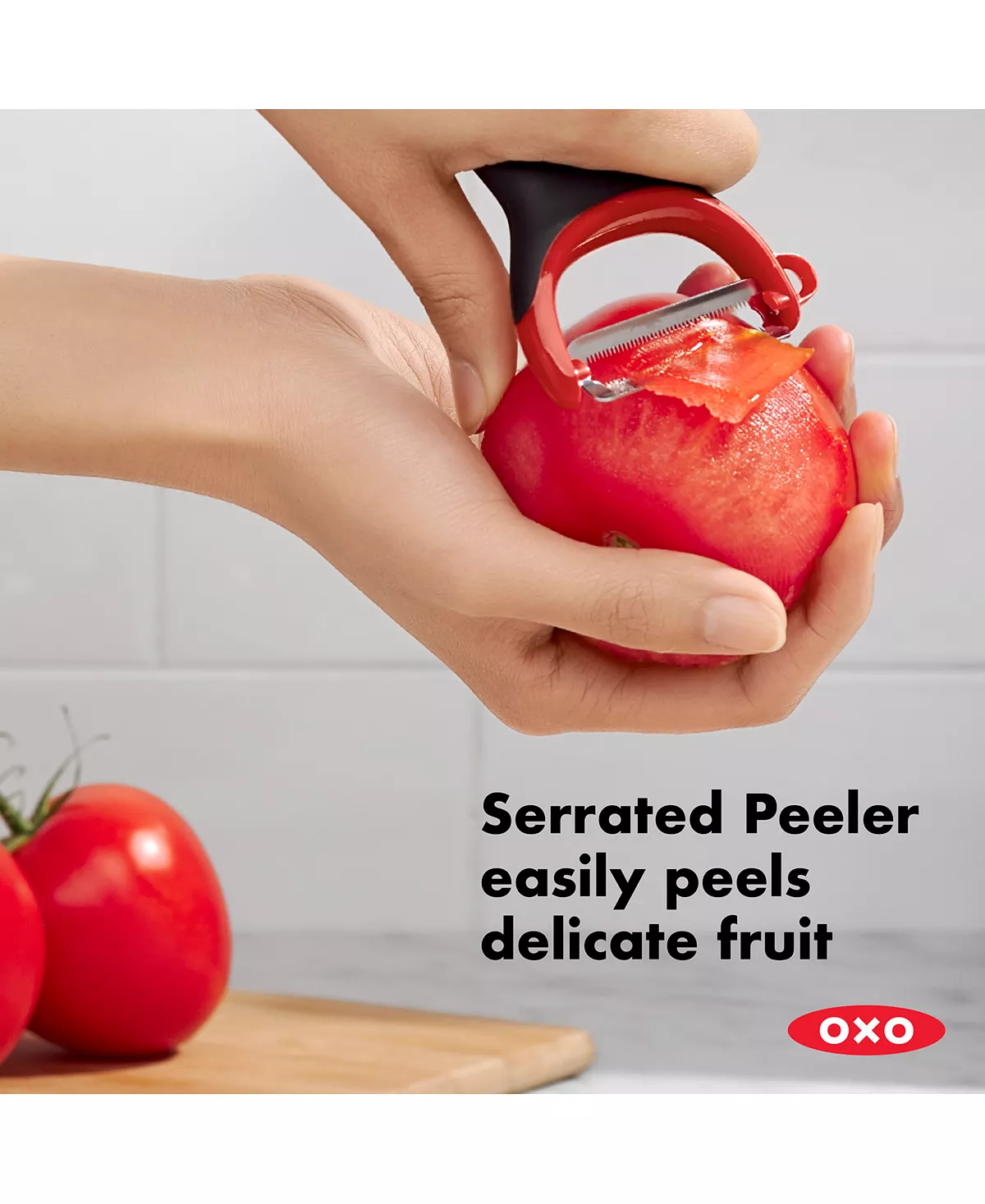 From removing fruit and vegetable skins to creating julienne strips for a treasured recipe, tackle any peeling task with OXO’s Good Grips set of three assorted peelers.