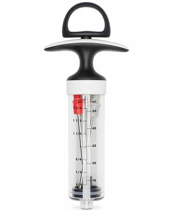 Flavor up your fillets or poultry with this Good Grips injector from OXO. It includes two needles suitable for thin or thick marinades. The clear tube has a comfortable handle for easy use.