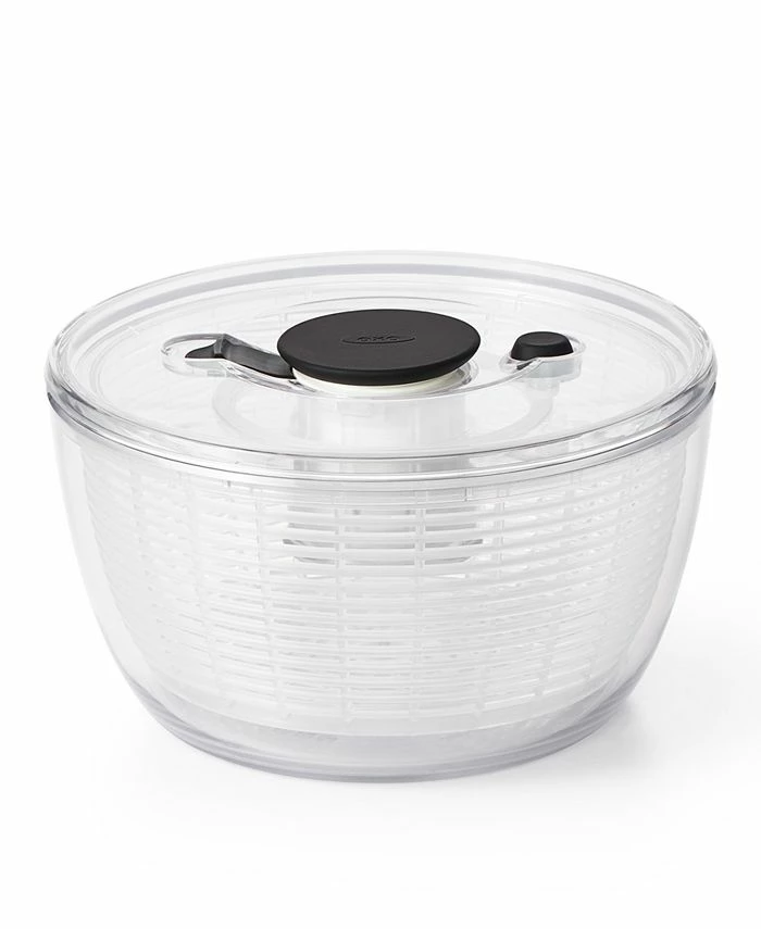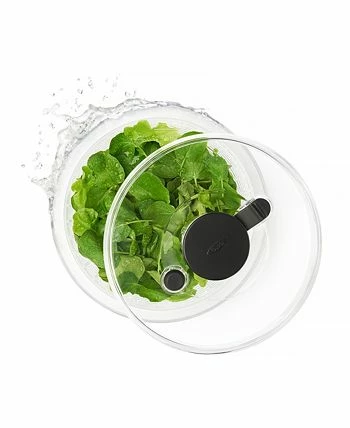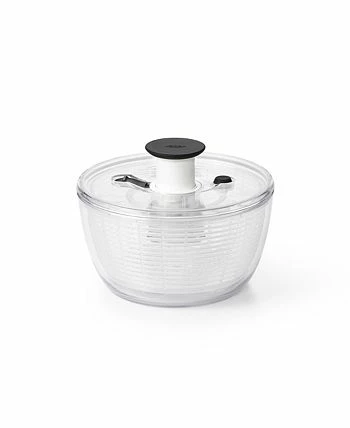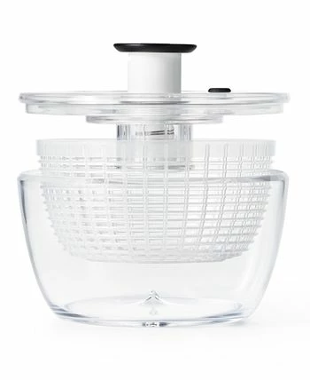 The OXO Good Grips Little Salad and Herb Spinner is the quick and easy way to dry a single serving of salad or a handful of herbs. For clean, dry ingredients, just press the soft, non-slip knob. The spinning basket doubles as a colander, so you can rinse lettuce and more with ease. The non-slip base prevents skidding, and the patented built-in brake button stops the Spinner on a dime for unloading. Toss and serve your salad right in the bowl: The durable dish is crystal clear and moves seamlessly to the table. Simply slide the lock to hold the pump flush with the lid for compact storage. The lid comes apart for thorough cleaning. Bowl capacity is 3 qt/2.84 L; basket capacity is 2.44 qt/2.31 L.