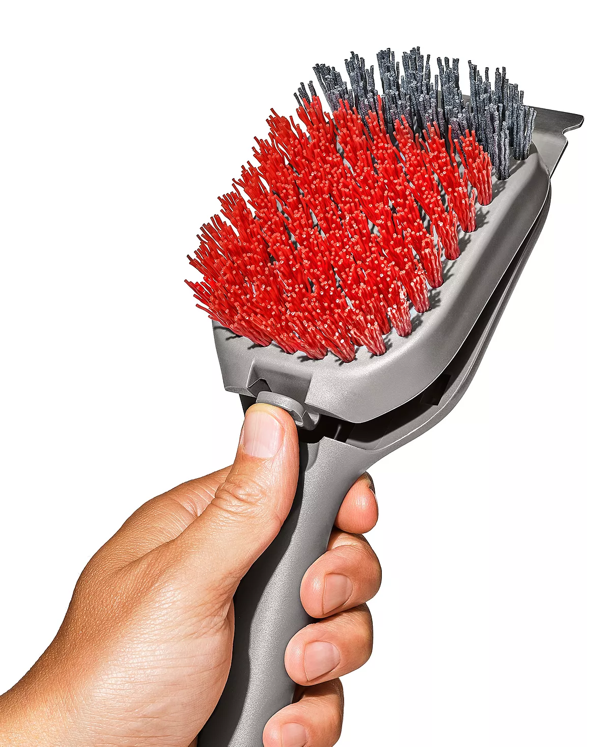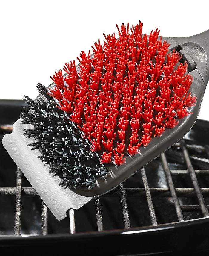 Deep clean barbecue grill grates safely and with ease using OXO’s Good Grips nylon grill brush. Designed for cold cleaning, the brush features front rows of bristles that are angled to reach into corners and a stainless steel scraper “tip” with cut-outs to help clear off burnt-on bits.