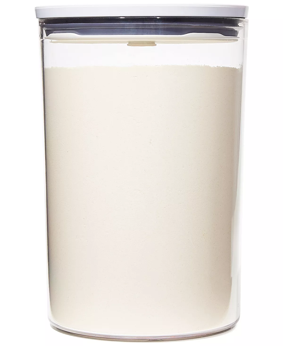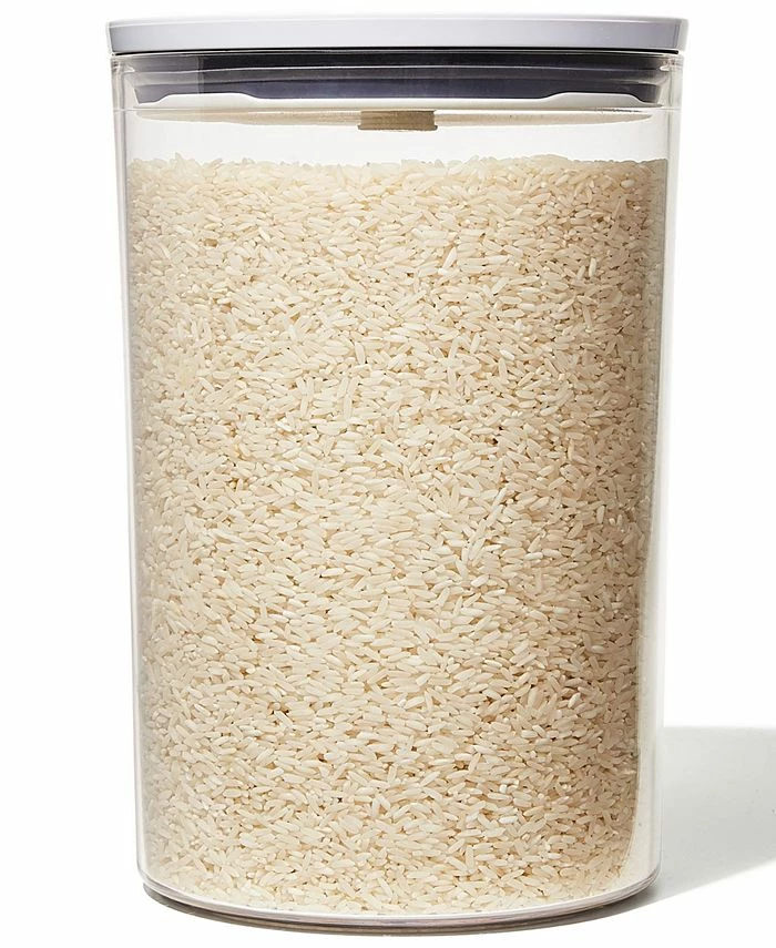 Stackable and space-efficient, OXO Good Grips POP food storage canisters keep your dry foods fresh and your pantry organized. A unique pop-up button mechanism creates an airtight seal with one touch, while the large circular opening makes it easy to access contents.