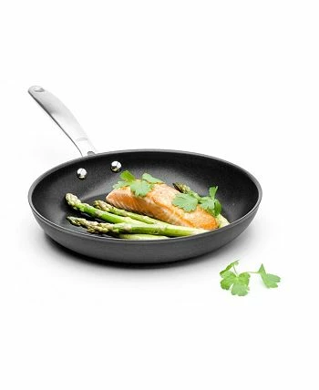 - Scratch-resistant hard-anodized aluminum ensures superior heat conduction and even cooking
