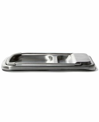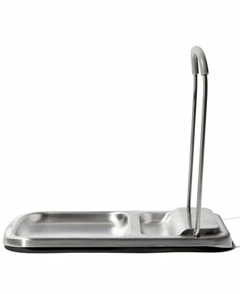 Keep countertops and stovetops clean with the OXO Good Grips spoon rest with lid holder. The two-in-one stainless steel design includes a base that holds multiple or oversized utensils and a wire lid holder that keeps drippings off surfaces for easy cleanup.