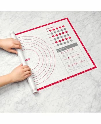 Get a guide to perfectly sized pizzas or pies with this silicone mat from OXO, featuring templates, measurement markers and conversion information for easy and precise rolling and baking.