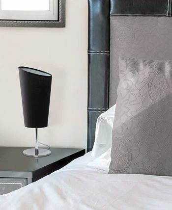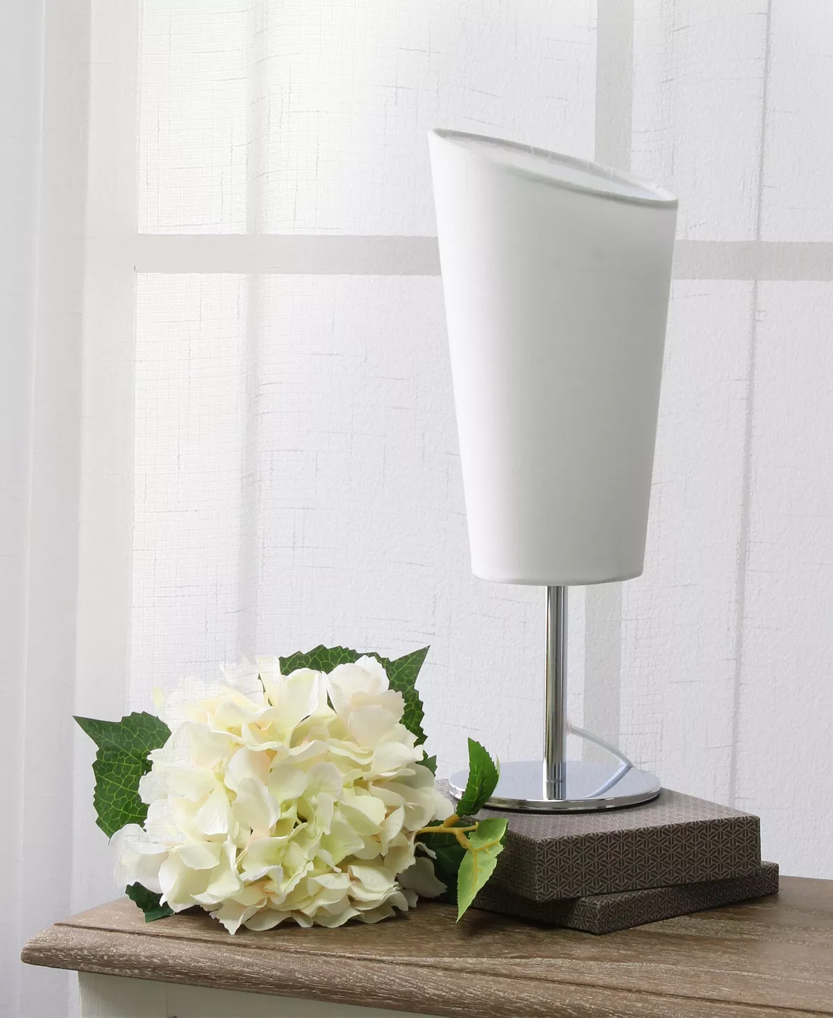 A lovely, inexpensive, and practical table lamp to meet your basic fashion lighting needs. This mini lamp features a chrome base and fabric shade. Perfect for living room, bedroom, office, kids room, or college dorm.