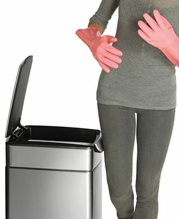 Touch & go. This sleek, fingerprint-proof trash can is the perfect fit for small spaces & features a touch bar that quickly opens the trash can with just a tap from the hip, elbow or whatever else is available when your hands are full. The smart lid design stays open until you close it for no interruptions during prep & cleanup.
