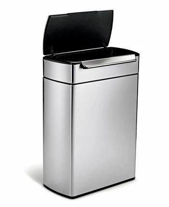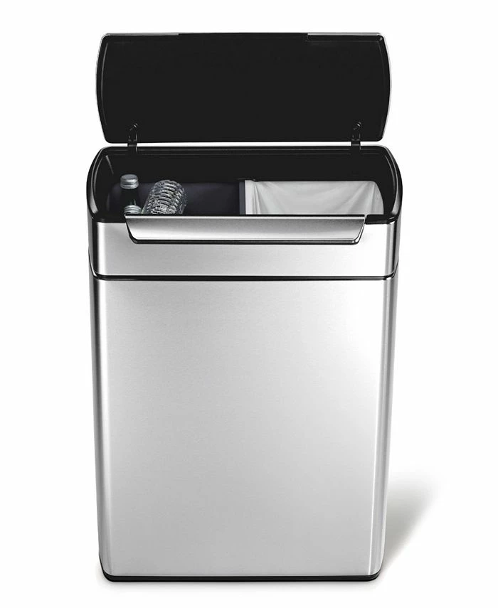 Featuring a 2-bucket design that makes sorting your trash & recyclables a simple science, this sleek, fingerprint-proof trash can features a touch bar that quickly opens the trash can with just a tap from the hip, elbow or whatever else is available when your hands are full. The smart lid design stays open until you close it for no interruptions during prep & cleanup.