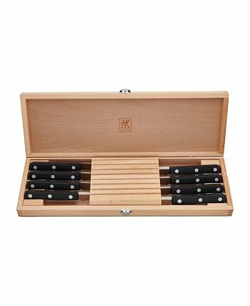 An inspired housewarming or bridal gift, these eight high-grade knives feature Henckels’ specially forged stainless steel blades – ice-hardened for sharpness and perfectly balanced with triple-riveted polypropylene handles. Lifetime warranty.